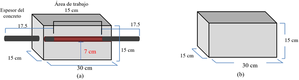 Figura 1 Características de las muestras elaboradas, (a) Con varilla de 50 cm, con 20 cm descubiertos como área de trabajo; (b) Sin varilla.