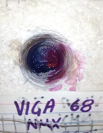 En la figura 11, se observa una muestra a los 7 días de realcalinización, en ésta se puede observar el cambio de coloración al final de los 7 cm de profundidad, sin embargo, a partir de los 14 días de este proceso la coloración se va intensificando, permaneciendo constante los días 21 (Figura 12) y 28 (Figura 13), lo que de acuerdo con los resultados obtenidos de la determinación de pH por el método del electrodo alcanza valores cercanos a 12.