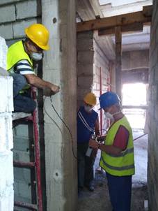 Como técnicas não destrutivas para estimativa usando SonReb, um esclerômetro digital Proceq foi usado. A superfície foi preparada de acordo com as normas vigentes (ASTM C805, 1997, NC 246, 2003). O programa utilizado para baixar os dados foi o Proceq Hammerlink. Um ultrassom Proceq Pundit Lab+ com transdutores de 54 KHz foi usado como medidor de pulso ultrassônico. O software de download de dados foi o Proceq PunditLink. A técnica de medição utilizada foi pelo método "Transmissão direta". Para a localização das armaduras embutidas nas colunas, foi utilizado o pacômetro Proceq Profoscope (Figuras 1-2).