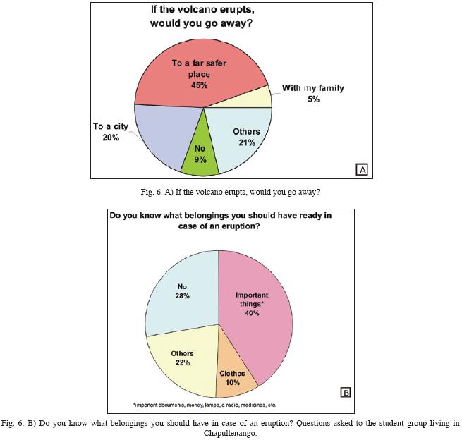 We assessed the levels of the respondents' knowledge of basic preparedness for a volcanic eruption, and 66% of them know the evacuation route, which is the paved road connecting Chapultenango with Ixtacomitán and Pichucalco towns. However, in case of a future eruption, only 40% of the students will bring along personal belongings such as important documents, radio, flash lights, and medicine. 28% of the students do not know which type of belongings they should have with them (Fig. 6B).