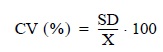 Para evaluar la variación interlaboratorio se ha calculado el coeficiente de variación (CV) para cada muestra como el cociente entre la desviación estándar (SD) y la media de los laboratorios (X):