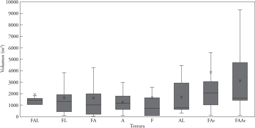 | Franco arcilloso (FA) | 71 | 286.13 | 38.18 |
