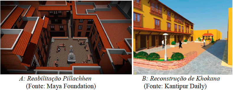 A maior parte do desafio é enfrentada pelos edifícios residenciais tradicionais e monumentos patrimoniais com estética local que representou a identidade do país e levou o valor da história e da cultura por mais de 2.500 anos. A recuperação destes edifícios na sua forma original seria uma pressão sobre os recursos, a menos que medidas específicas fossem tomadas para recuperar o patrimônio perdido e gerar retorno econômico. As residências tradicionais sem infraestrutura moderna e acesso veicular poderia ser muito redundante. Há várias abordagens que estão sendo encaminhadas sob os princípios do "Desenvolvimento Integrado de Assentamentos", que serão desenvolvidos após a demolição maciça de edifícios danificados para produzir uma perspectiva (Pilachhen Integrated Reconstruction in Lalitpur e Khokana, 2016, Figura 3).