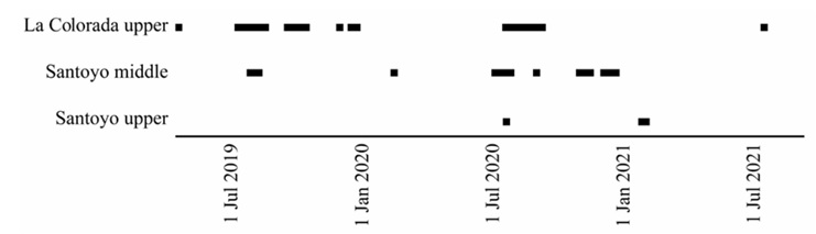 | La Laborcilla | Upper | 22.092206°, -101.725935° | 25 Jul 2019 – 6 Nov 2021 |