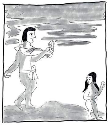 Y así era vista, semejante a una niñita, muy pequeña, niña chiquita, nada madura; sólo crujidorcilla, chapoteadorcilla, enanilla, nalgoncilla, peluda; tenía vestido de pelo, tenía colgajos de cabello; bien le crecían hacia atrás; caía su cabello, su vestido de cabello. Y así caminaba: sólo en la superficie de la tierra iba andando, iba lentamente (López Austin 1969, 56-57).