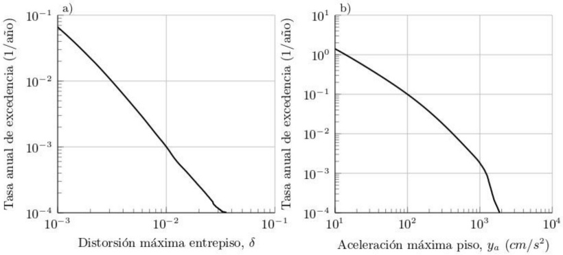 Las tasas de excedencia de la distorsión máxima de entrepiso y de la aceleración