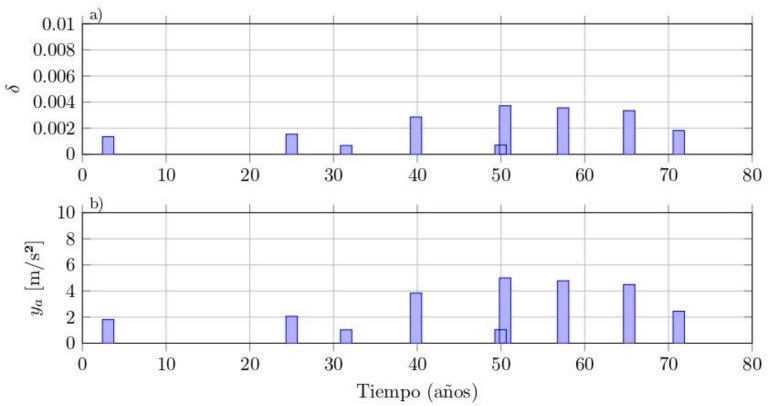 4. . Dado que la mayoría de los costos futuros están relacionados con el daño estructural, se calcula el índice de daño Id, definido en la ecuación 5 (Tolentino y Ruiz, 2015). El valor de Id se calcula para cada distorsión simulada a lo largo del ciclo de vida de la estructura.