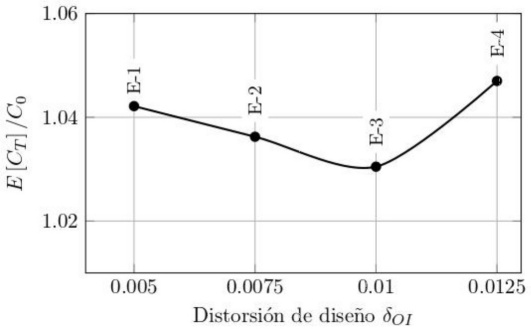 La figura 16 muestra el valor esperado del costo total normalizado con respecto al costo inicial, para los casos de estudio E-1, E-2, E-3 y E-4.