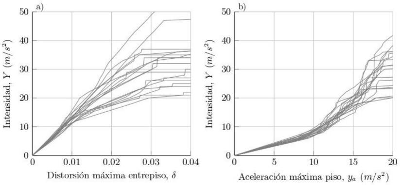 En la figura 8 se presentan los resultados de los ADI correspondientes a la distorsión máxima de entrepiso (figura 8a), y a la aceleración máxima de piso (figura 8b).
