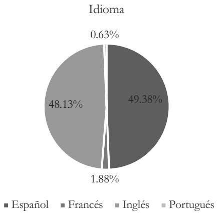 Un apunte adicional tiene que ver con los periodos temporales sometidos a estudio. Al respecto, la Gráfica 9a indica que los politólogos ecuatorianos priorizan los trabajos sincrónicos (45 %) a los diacrónicos (48.12 %).7 Entre otras razones, el desbalance podría ser explicado por las dificultades de diverso orden que existen en Ecuador para acceder a información de calidad y comparable en el tiempo. Como consecuencia de ello, se complica desarrollar investigaciones en las que se exploran amplios espacios temporales. Finalmente, la Gráfica 9b refleja que las publicaciones de los politólogos ecuatorianos se distribuyen de forma muy similar, en términos porcentuales, entre español (49.38 %) e inglés (48.13 %). Al respecto, existe una interesante discusión sobre el impacto que genera un artículo en función del idioma en el que es escrito y del área geográfica que es motivo de análisis. En ese tema, Basabe-Serrano y Huertas-Hernández (2018) han mencionado que, dado el bajo porcentaje de latinoamericanos que dominan el inglés, la lectura de trabajos académicos publicados en ese idioma decrece considerablemente en esa región.