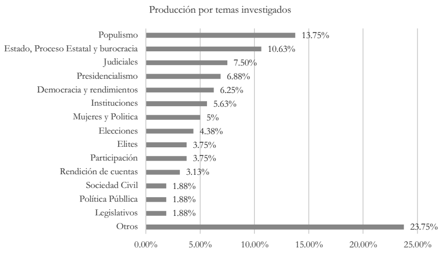 Gráfica 5 Temas más estudiados en la ciencia política ecuatoriana