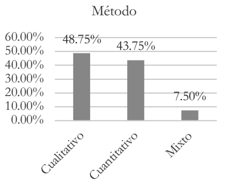 Un rasgo característico de los trabajos analizados, es que las preguntas de investigación suelen ser sobre aspectos configurativos más que orientados a la búsqueda de generalizaciones. Aunque este hallazgo podría llevar a la idea de que las investigaciones son prioritariamente cualitativas, la Gráfica 7a refleja que no hay mayor diferencia entre dicho enfoque (48.75 %) y el cuantitativo (43.75 %). Lo que queda claramente expuesto es que los trabajos en los que se utiliza el método mixto son marginales, a pesar de su profunda utilidad para vincular la precisión de los datos cuantitativos con la densidad de las narrativas cualitativas (7.5 %). Por otro lado, la Gráfica 7b da cuenta que tampoco existen diferencias marcadas entre los estudios de caso (47.5 %) y los de naturaleza comparada (45.6 %).5 Tanto desde la perspectiva de los enfoques metodológicos como en relación al número de observaciones utilizadas para los estudios, los hallazgos expuestos nos hacen pensar que la ciencia política ecuatoriana es diversa y plural. Este elemento de juicio es clave pues no es un rasgo demasiado extendido en los estudios que se desarrollan dentro de la disciplina.