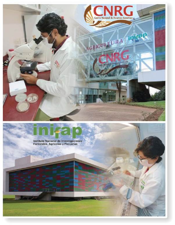 Figure 5 The National Genetic Resource Center of the National Forestry, Agriculture and Livestock Research Center (Centro Nacional de Recursos Genéticos del Instituto Nacional de Investigaciones Forestales Agrícolas y Pecuarias, or CNRG-INIFAP), created to preserve and protect the beneficial microbe and plant biodiversity related to the Mexican agri-food sector. Researchers of the Microbial Genetic Resources Laboratory (Laboratorio de Recursos Genéticos Microbianos) working on the identification of agriculturally important fungi and the conservation of plant growth-promoting bacteria.