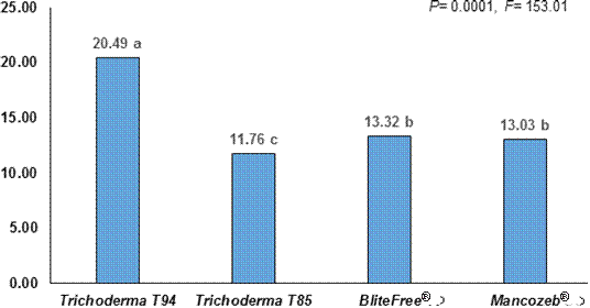 | Trichoderma T-94 | 1.41×108 ± 2.2×107 a |