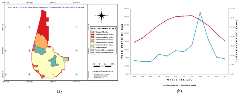 Se recopilaron datos de tres estaciones meteorológicas para el área de estudio. La estación S.J. 3-47 Río Bravo (1951-2010), la Simulación SWAT (1979-2014), y la Estación Automatizada del Módulo III-4 (2016-2020) aportaron datos climáticos diarios, mensuales y anuales. La ubicación de estas estaciones se muestra en la Figura 5b (SMN, 2020).