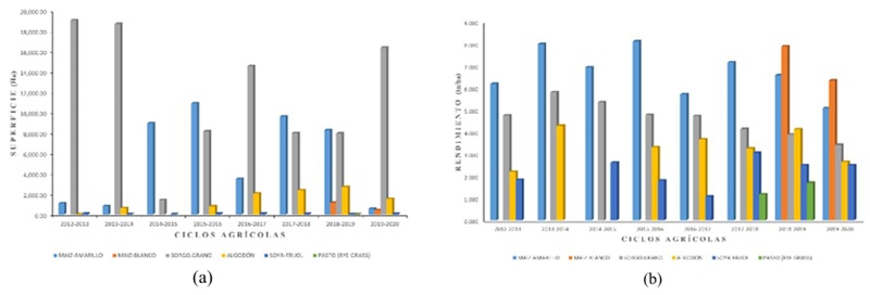 | Ciclo agrícola | Maíz-Amarillo | Maíz-Blanco | Sorgo-Grano | Algodón | Soya-Frijol | Rye-Gras |
