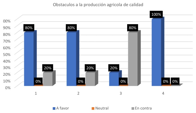 | 3 | Los costos de estudios de calidad de suelos son un obstáculo para que el agricultor no lleve a cabo esta práctica. |