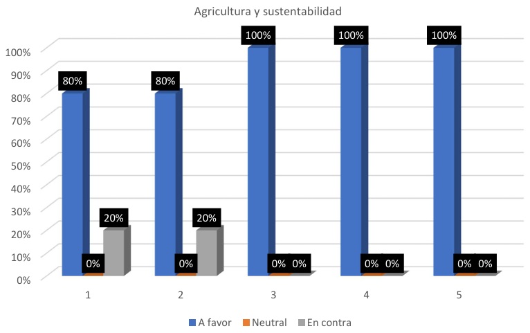 | 5 | La cultura de cuidado de la calidad de suelos ayuda al desarrollo sustentable del sector agrícola del municipio. |