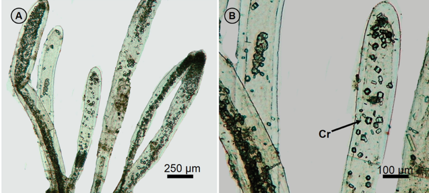 Respecto a las estructuras de fijación, predominan los rizoides con 79% de las especies seguidos de los discos de fijación con 18%. Esto también fue observado en otros estudios como el de Quiroz-González et al. (2020), donde estas mismas fueron las más frecuentes en algas que se desarrollan sobre las conchas del molusco Chiton articulatus G.B. Sowerby I, 1832. Por su parte, Cabrera Guerrero y Jover Capote (2022) encontraron una proporción de 58% para los rizoides y 33% para los discos de fijación sobre caparazones de distintas especies de crustáceos. Además, señalaron que los rizoides exhiben una serie de propiedades adaptativas, que incluyen crecimiento apical, ramificación frecuente, respuestas a los estímulos y plasticidad morfológica, que permiten a las algas aumentar el área de contacto superficie-sustrato y formar una fuerte unión.