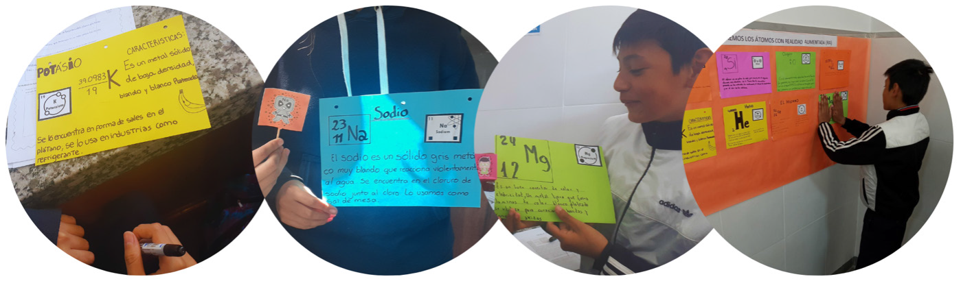 En una de las actividades de aplicación se proponía la confección de tarjetas informativas acerca de elementos químicos presentes en la vida cotidiana, a partir de la información obtenida al enfocar los marcadores de Apps como RApp Chemistry y Fuerza Química UAEH. Finalmente, se presentaba la actividad de cierre, que consistía en la socialización de las distintas producciones grupales (Imagen 2).