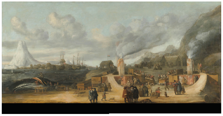 Uno de los ejemplos visuales más interesantes para entender el papel de la lámpara de aceite en el cambio del espacio doméstico son las pinturas de Judith Leyster, quien fue bautizada en Haarlem el 28 de julio de 1609. A lo largo de la investigación se planteó la hipótesis de que las lámparas representadas de manera minuciosa en las pinturas de Leyster podrían estar alimentadas por aceite de ballena. Al inicio de la Modernidad europea se comenzó a usar aceite de ballena como combustible para la iluminación en la costa norte del continente. De las ruinas de la industria vasca,7 en 1614 se inaugura la Noordsche Compagnie, un conglomerado de empresas balleneras holandesas previamente existentes. En el cuadro de 1639 de Cornelis de Man, The Whale-oil Refinery near the Village of Smerenburg (Figura 3), puede verse lo que Muller relata en su historia de la Noordsche Compagnie, publicada en 1874 en Utrecht, como “costosas industrias a pie de playa en las que hervir hasta media tonelada de la grasa de ballena en calderos de cobre” (Muller, 1874, s.p.). La grasa hervida y disuelta en agua se depuraba e introducía en toneles, dejándola lista para su uso.