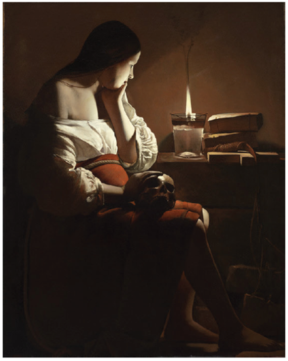 Debido al alto contenido de glicerina en la grasa de los cetáceos, la combustión del aceite de ballena produce poco humo y una luz estable.8 Es necesario tener esto en cuenta al observar la diferencia entre los cuadros La Madeleine à la veilleuse (La Magdalena con una llama humeante) de George de La Tour (Figura 5), frente a la lámpara representada en Man Offering Money to a Young Woman (Hombre ofreciendo dinero a una mujer joven) de Judith Leyster (Figura 4) que, pese al extremo detalle de la pintura, parece no emitir casi humo.