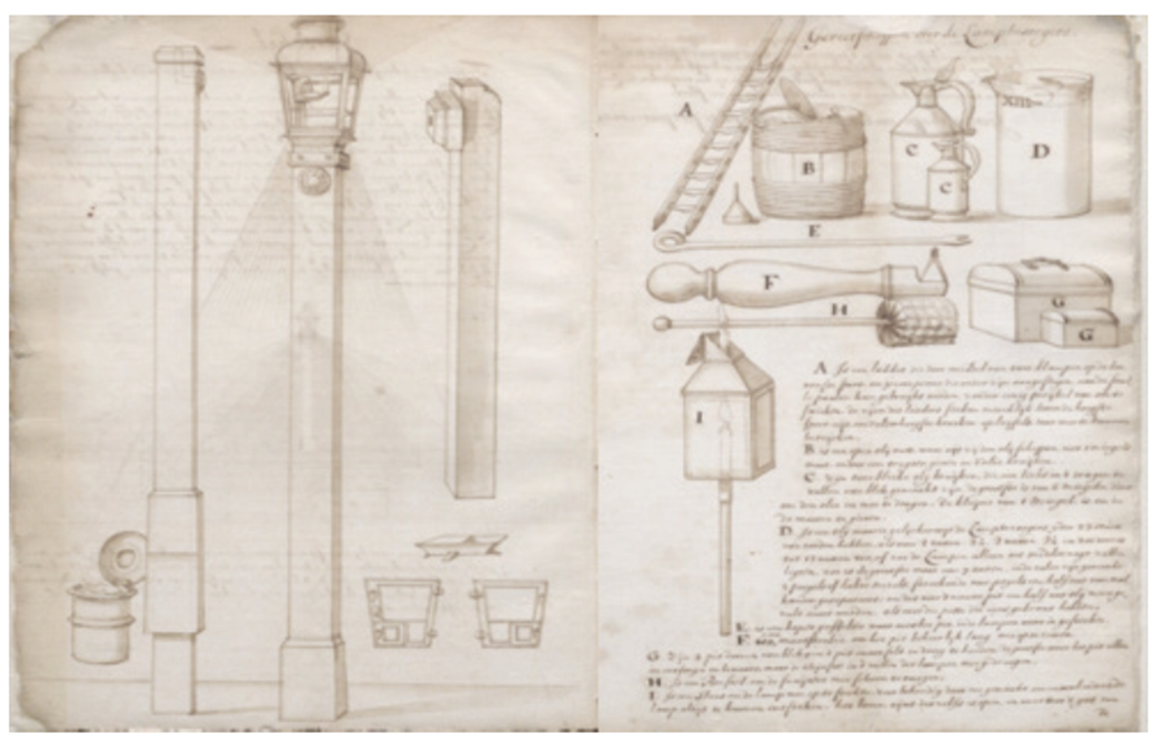 Figura 7 Documentos sobre la obtención de asesoramiento sobre la iluminación del supervisor de las linternas de la ciudad Ámsterdam, Jan Van der Heyden, 1668
