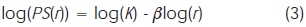 A least squares fitted straight line between log(PS(r)) and log(r) was computed, and the global fractal dimension DPSwas calculated from the slope β using DPS=(8-β)/2. Bidimensional Fourier transform is then used to calculate the power spectrum.