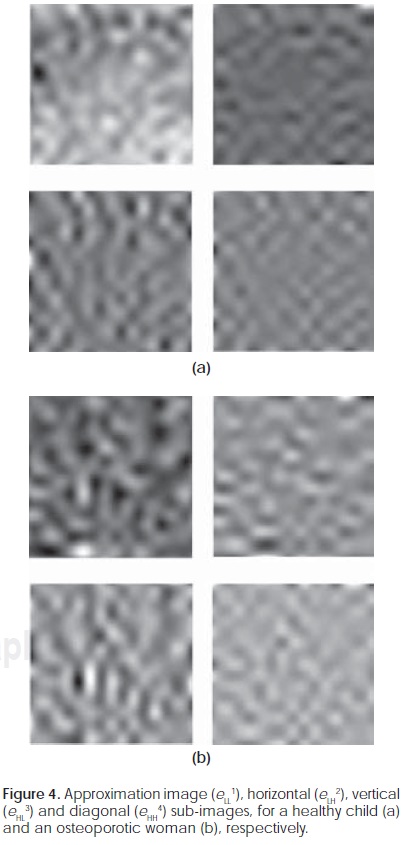 The wavelet transform has been commonly applied to texture analysis as an important multi-resolution analysis tool18,19. To our knowledge, it has not yet been applied to trabecular bone for diagnosing osteoporosis. One prior report contributed to computeraided diagnosis, but it is focused on breast cancer20.