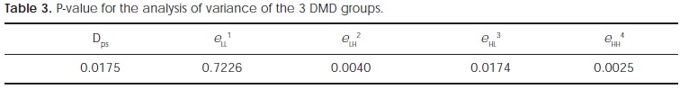 On the other hand, this above mentioned result is confirmed with the performed analysis of variance for Duchenne muscle dystrophy patients, where it was found also a relationship between the incremental appearances of high spatial components and decreasing BMD.