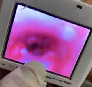 Figura 1: Estenosis traqueal subglótica de tipo diafragmática con luz aproximada de 2 mm (imagen obtenida con videoestilete).
