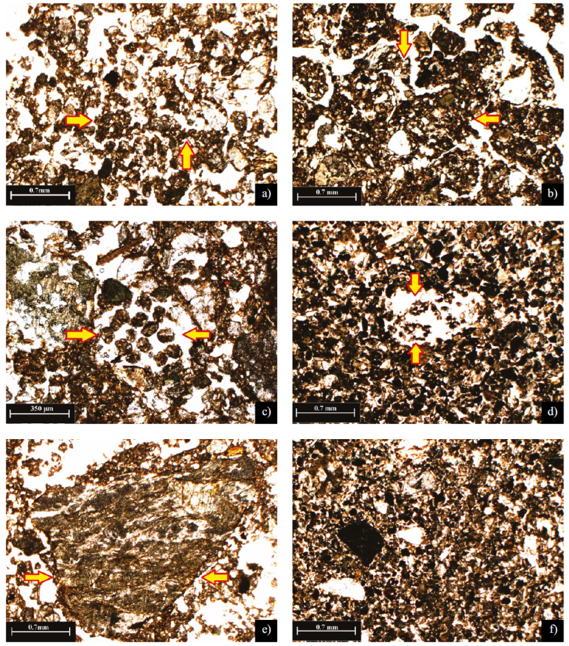 Otra alteración detectada a nivel micro-estructural fue la mezcla de agregados pedogénicos provenientes de los horizontes superficiales entre la matriz no pedogénica proveniente de los depósitos aluviales subyacientes. Así como la mezcla de fragmentos líticos de origen coluvial mezclados con la matríz de origen aluvial. Esto evidenció las movilizaciones, transporte y nueva depositación de materiales del suelo y sedimentos (Figuras 5a, 5b y 5c), lo cual está acorde con patrones espaciales de distribución preferencial de materiales relacionados con los enterramientos y las actividades de corte y relleno de tumbas (Usai et al., 2014; Burns et al., 2017).