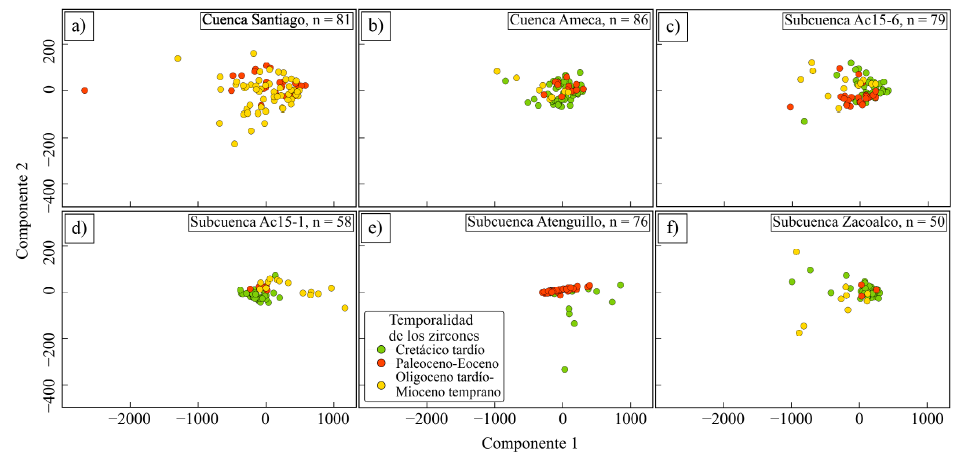 Cronología de los zircones detríticos de las cuencas Ameca y Santiago