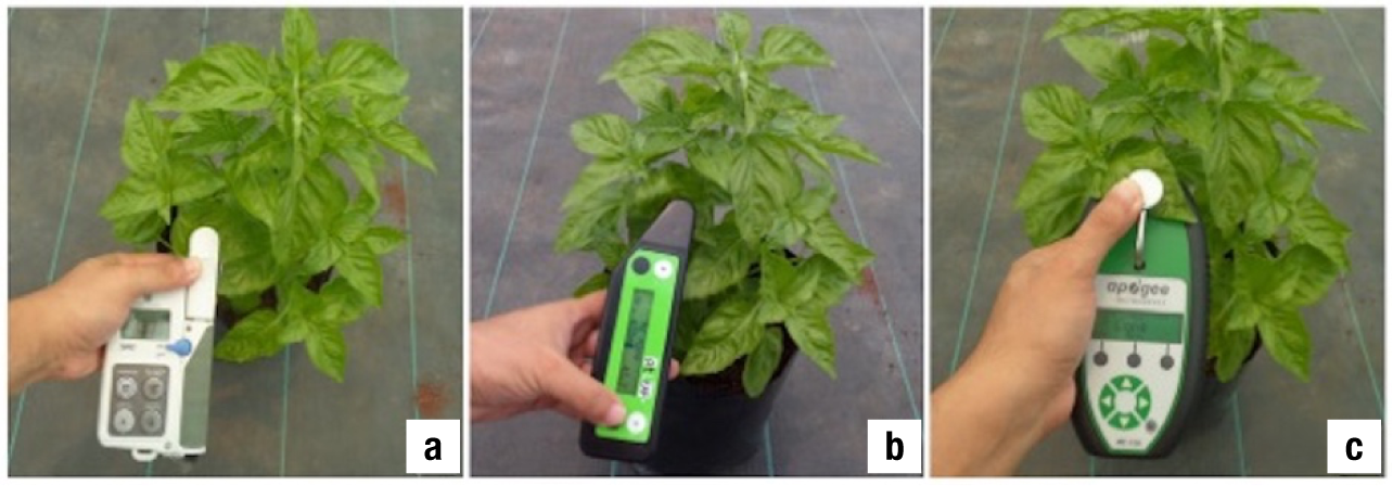 Para las hortalizas de hoja y las hierbas aromáticas, el color verde de las hojas es esencial como indicador de calidad para el consumo en fresco. Por lo tanto, determinar la concentración de N y Chl en las hojas in situ representa una herramienta valiosa de producción del cultivo para maximizar la calidad y la comerciabilidad. El objetivo de este estudio fue determinar la relación entre las lecturas de SPAD, atLEAF y MC-100, con los valores de Chl, N y materia fresca (MF) de albahaca ‘Nufar’.
