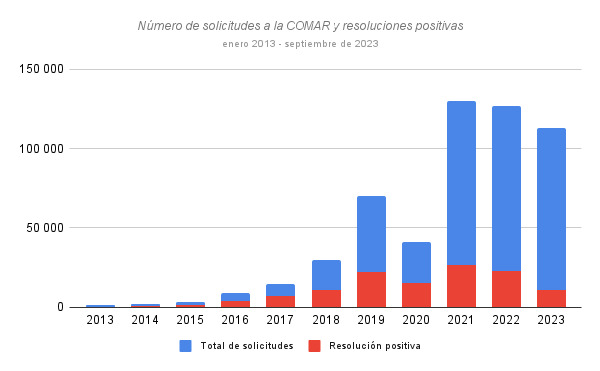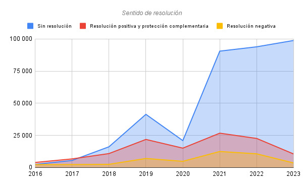Mediante una solicitud de información pública a través de la Plataforma Nacional de Transparencia (PNT), se conoció que aproximadamente 15% de estas personas abandonó el procedimiento, mientras que en 14% de los casos la COMAR indicó imposibilidad material para emitir una resolución, cualquiera que ésta sea (COMAR, 2023b). Se desconoce si estas personas lograron regularizar su situación por otra vía, llegaron a Estados Unidos o continúan en el país de forma irregular, lo que contraviene el acceso a derechos fundamentales.