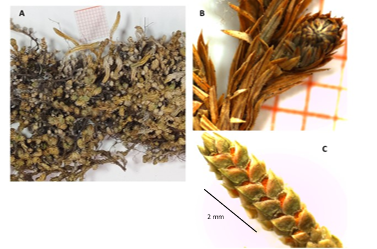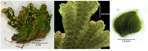 Selaginella ribae (Figura 4), se ubica en el subgénero Lepidophyllae, el cual se caracteriza porque las especies tienen hábito de crecimiento arrosetado, rizóforos dorsales, licófilas vegetativas dimorfas arregladas en 4 hileras, donde las licófilas de las hileras dorsales son más pequeñas o casi iguales que las de las laterales y esporófilas monomorfas formando estróbilos cuadrangulares (Weststrand & Korall, 2016a, 2016b).