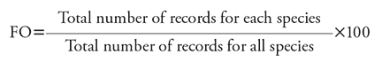 The foraging preferences were identified using the following formula: