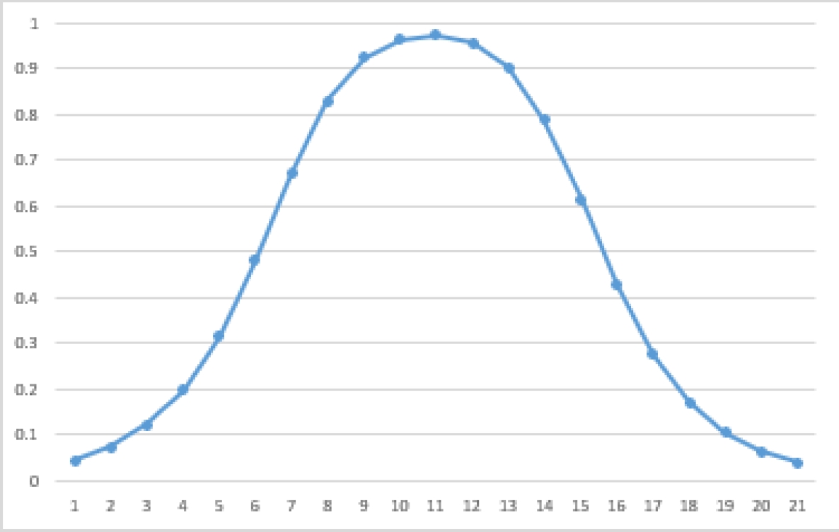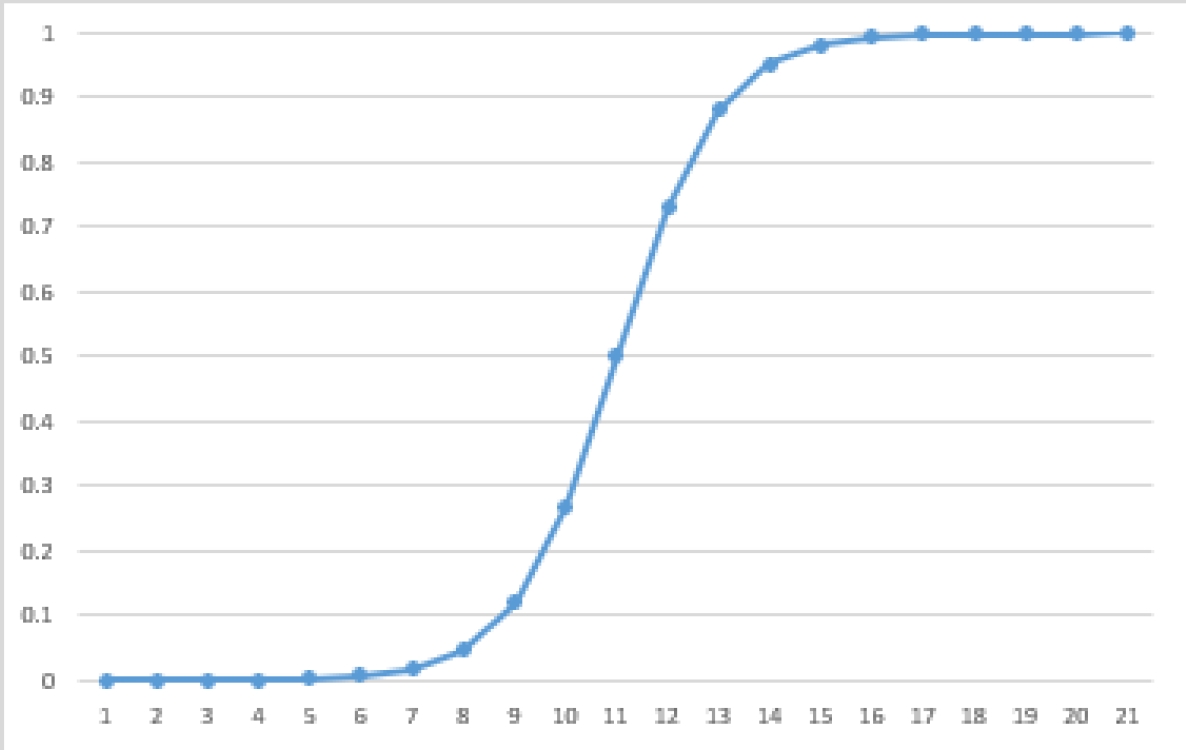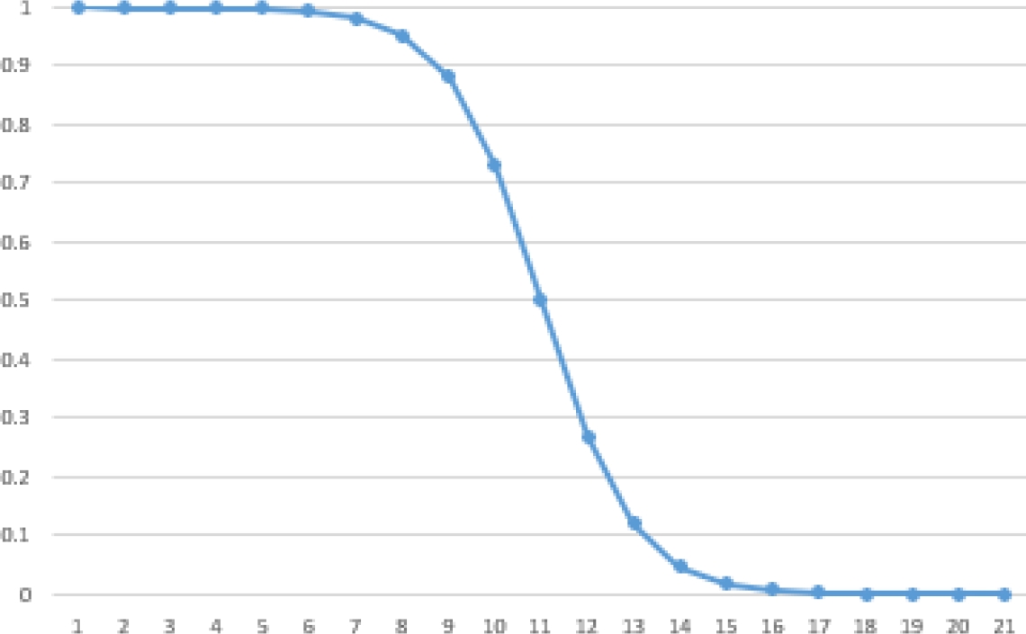 It should be mentioned that the sigmoid function has several properties that make it favorable for optimization. First, the function is asymptotic in 1. Because of this, a higher value of