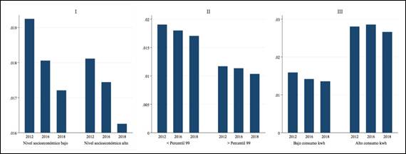 Desde esta perspectiva, se considera que con la RE-2013 y la posible reducción en los precios de electricidad, los hogares más pobres serán afectados en una mayor proporción (o intensidad) que aquellos con más recursos económicos (Atamturk et al., 2012; Moshiri y Martínez, 2018). Así pues, el contrafactual son los hogares de estrato socioeconómico medio-alto (3) y alto (4), mientras que el grupo de tratamiento son los hogares con un nivel socioeconómico bajo (1) y medio bajo (2).