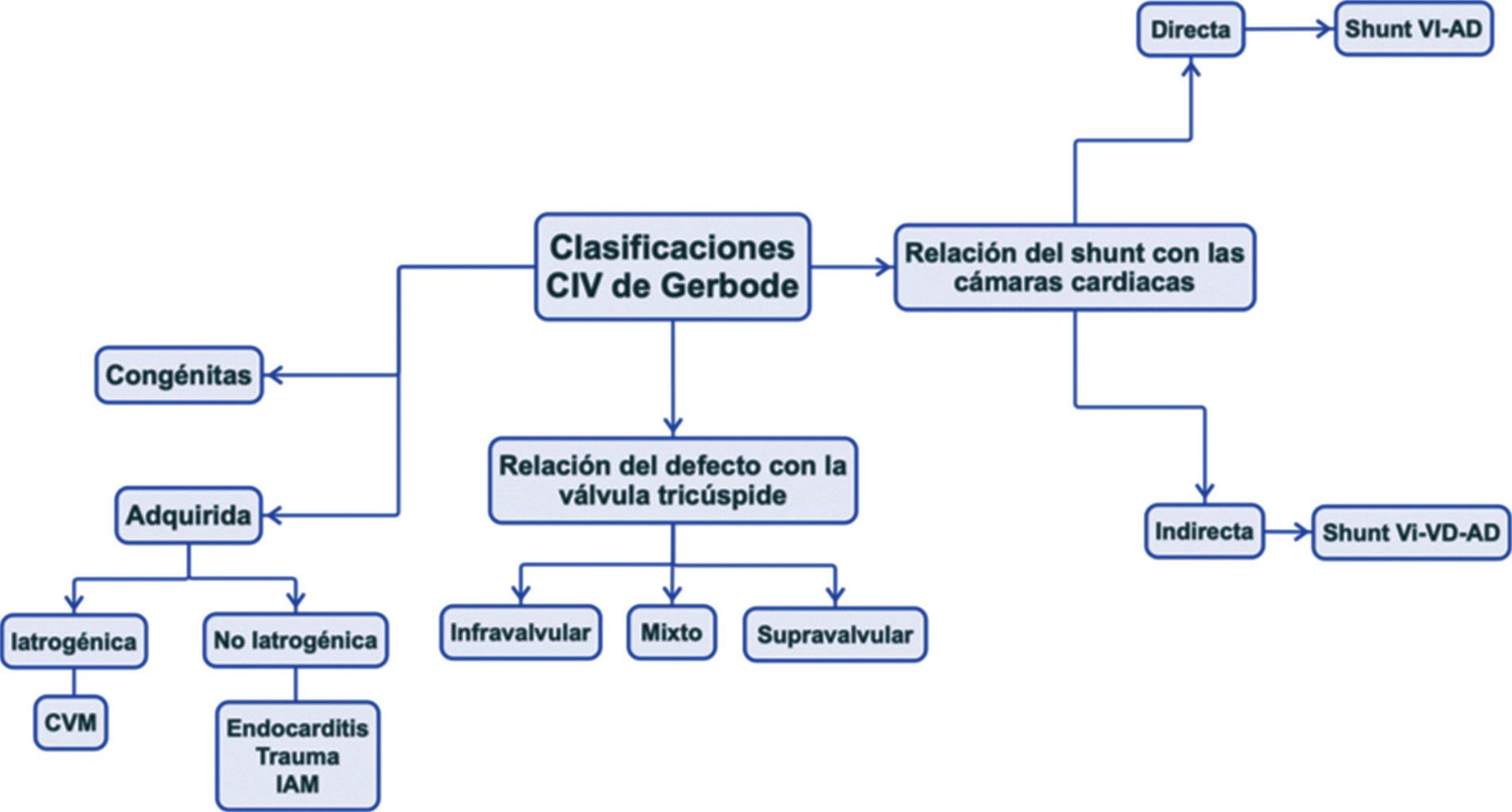 La CIV de Gerbode se ha clasificado de distintas maneras desde su primera descripción. De manera general se clasifica por su presentación en congénita y adquirida; sin embargo, el término «defecto de Gerbode» idealmente debe utilizarse para referirse al defecto congénito, no al adquirido. Yuan2, en 2014, reportó que del 100% de los defectos analizados en su revisión, el 26.4% eran congénitos, el 72.7% eran adquiridos y solo el 0.8% eran de origen incierto o desconocido.