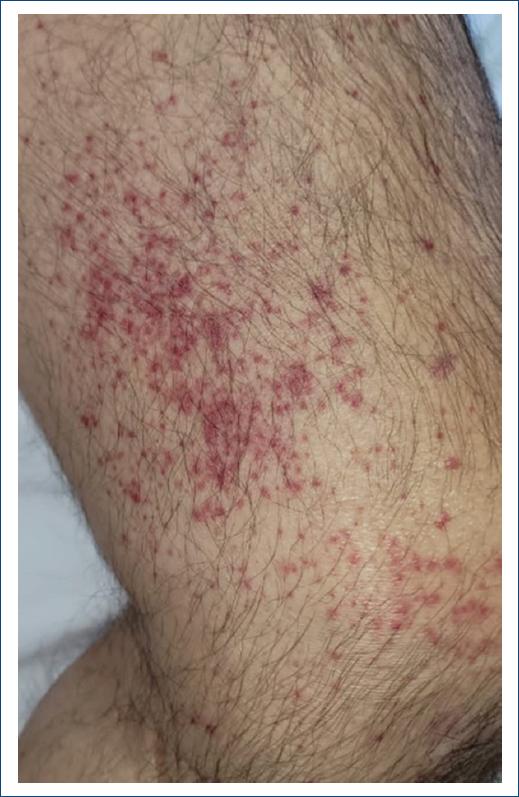 | Vasculitis leucocitoclástica M:1 H:1 | Polifarmacia, betametasona IM |