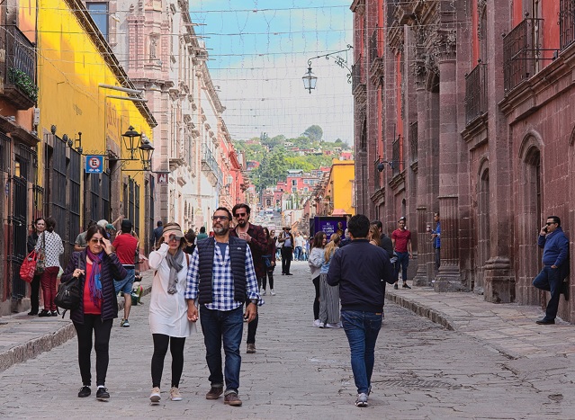 San Miguel de Allende, como muchas otras ciudades latinoamericanas, acumula las capas precedentes de culturas: indígenas mesoamericanos, hispanos, criollos, mestizos, africanos, etcétera. En el siglo XX, el multiculturalismo de San Miguel de Allende se enriqueció con una política migratoria internacional promovida por los Estados Unidos de América, que validó las actividades culturales y educativas en los planes de estudio de algunas instituciones educativas de la ciudad, lo que provocó una importante presencia de poblaciones extranjeras desde la década de 1940 (Covert, 2017). Esto inyectó la vitalidad económica que preparó el escenario para la atracción turística mostrada por la ciudad desde finales del siglo XX y muy acentuada durante las primeras décadas del XXI (Gárriz, 2011; Croucher, 2009). Su turismo está creciendo y se dice que un millón de personas la visitaron en 2015 (Sectur, 2016). Según información de 2010, entre 10 000 y 16 000 extranjeros viven en San Miguel de Allende (Gárriz, 2011) y el perfil dominante es de mujeres jubiladas estadounidenses de la tercera edad (INM, 2009).