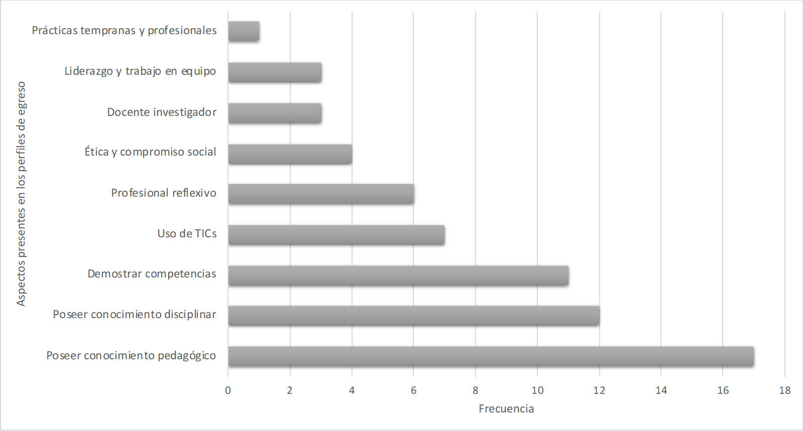 El perfil de egreso de las carreras refleja la identidad de cada programa formativo y declara cuáles son los conocimientos, habilidades, actitudes y valores que se compromete a desarrollar el futuro docente (Möller y Gómez, 2014). Para la formación de profesores en América Latina existe una diversidad de visiones respecto al perfil del egresado de algún programa de formación docente. Existe coincidencia en que un profesor recién egresado debe poseer amplio conocimiento de la disciplina a enseñar y de saberes pedagógicos, además de poseer cualidades como ser responsable, reflexivo, crítico y socialmente comprometido con su entorno (Rojas, 2013).