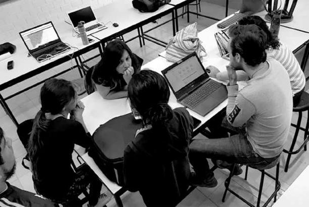 Después de la elaboración inicial y el trabajo participativo de todos los estudiantes colaborando durante la primera semana del taller, éstos se agrupan ahora en equipos de tres a cuatro estudiantes -cada uno actuando en su correspondiente rol dentro del grupo-. Se dedicarán en adelante a elaborar sus propuestas arquitectónicas y urbanas durante un periodo de dos semanas de duración (Figura 4). El diseño de la experiencia educativa implica la preparación previa de un programa de necesidades, que los estudiantes deberán resolver e integrar en el emplazamiento de trabajo propuesto a la finalización del taller.