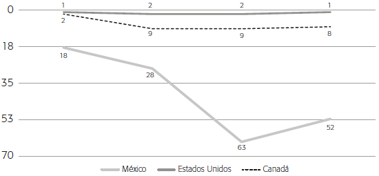 | Subindicador | Estados Unidos | México | Canadá |