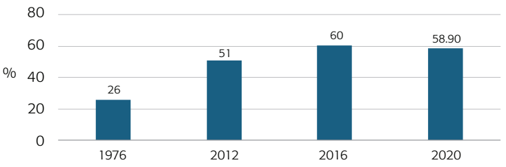Gráfica 1 Porcentaje de ciudadanos de Estados Unidos que viven en condados con partido dominante