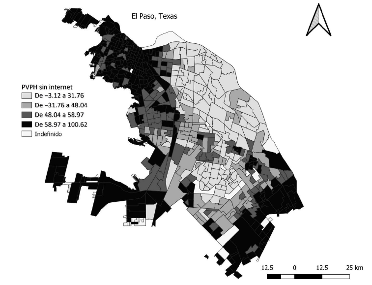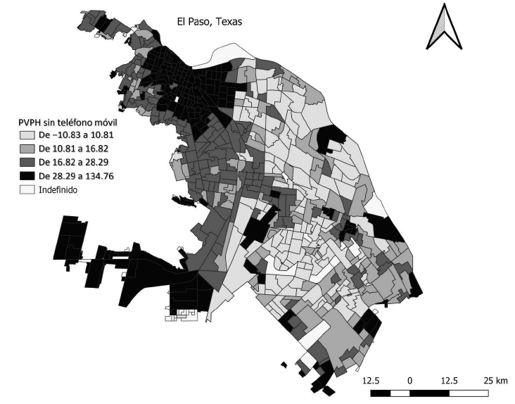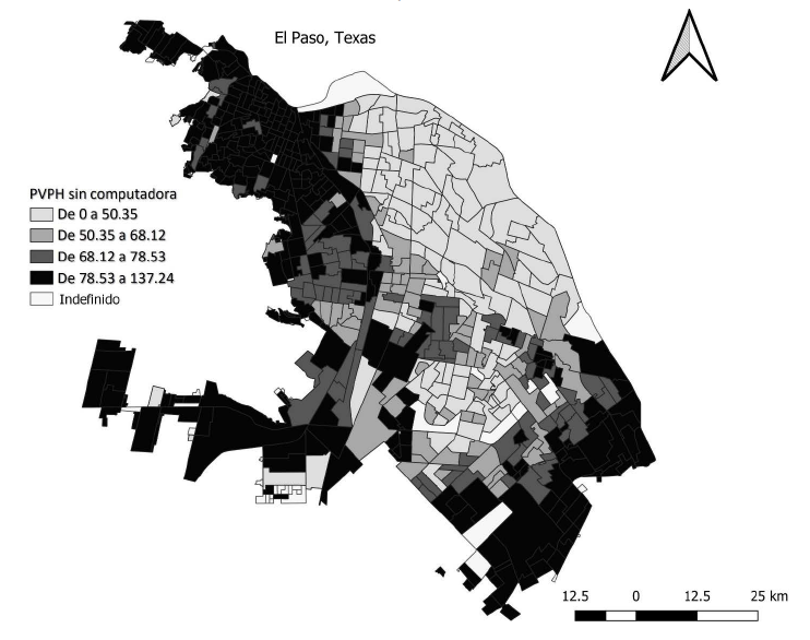 Como último punto, se considera que, para el caso de Ciudad Juárez en 2020, la falta de un teléfono móvil con conexión a internet limita la capacidad de salir de un contexto de marginalidad. A pesar de la cercanía con Estados Unidos, la marginalidad urbana y la brecha digital siguen estando bastante presentes, ya que una parte de la ciudad muestra una falta sustancial de acceso a internet y a computadoras.