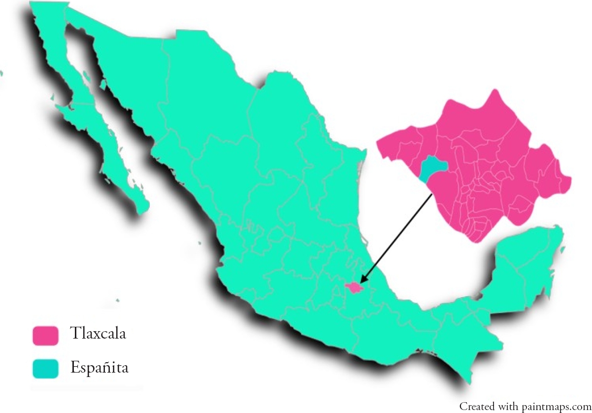 El municipio de Españita, Tlaxcala, se ubica en el Altiplano Central Mexicano, a una altitud promedio de 2,640 metros sobre el nivel del mar. Su posición geográfica es: 19° 27’ latitud Norte y 98° 25’ longitud Oeste. Tiene una superficie de 140.18 km2, lo cual, representa 3.51% de la entidad (3,999.14 km2) (Figura 1) (Ayuntamiento Municipal de Españita, 2022).