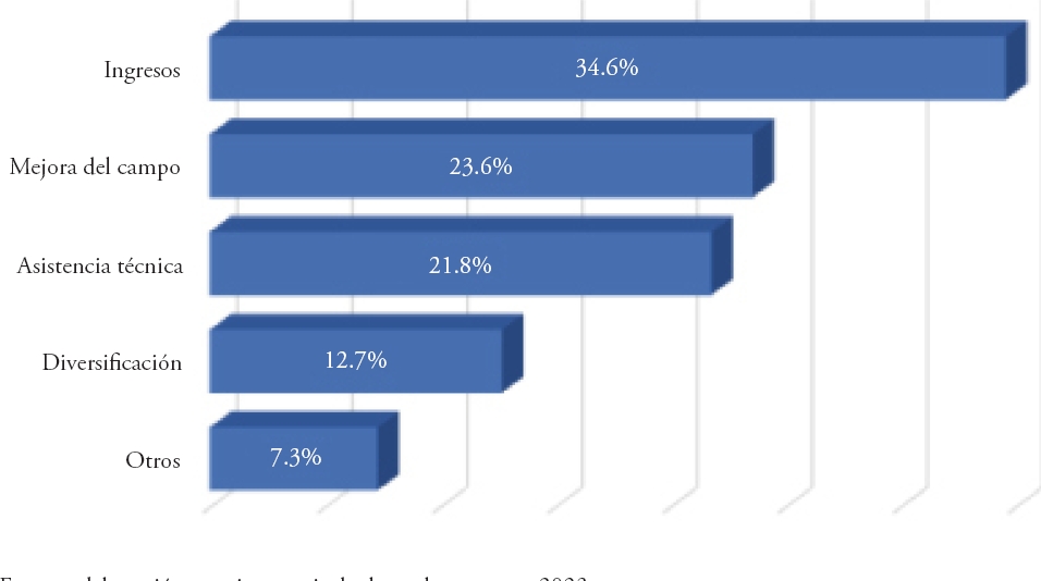 El nivel de escolaridad con mayor presencia en la zona, es la primaria, esto debido a que los beneficiarios desde pequeños, iniciaron a trabajar en el campo con sus padres o en haciendas, hay casos en los cuales, los productores trabajaban fuera de las comunidades y algunos, desertaron por mal aprovechamiento. De igual forma, la mayoría son adultos mayores, que de acuerdo con el CONEVAL (Consejo Nacional de Evaluación de la Política de Desarrollo Social) (2020), en 2018, 54.4% de la población adulta mayor en México, contaba con un rezago educativo, provocando que este grupo, presente iniquidades sociales y económicas. De los beneficiarios, 69.1% cuenta únicamente con una fuente de ingresos. En tal sentido, Arteaga-Domínguez et al. (2021), señalan que la edad, tiene una relación negativa en cuanto a la diversificación de los ingresos, es decir, a mayor edad, existe menor probabilidad de que tengan empleo en otras actividades.
