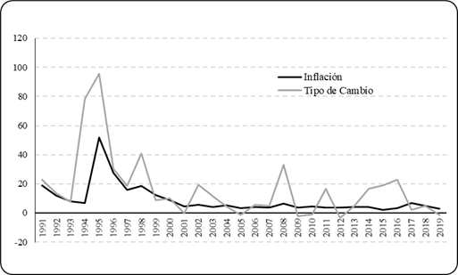 Figura 1 Inflación y Tipo de Cambio Variación % Anual